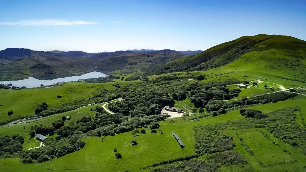 From the sun-drenched slope of Black Mountain in coveted Nicasio overlooking its gorgeous reservoir, West Wind Estate and Winery combines Northern California wine and food culture with Japanese philosophy for true Zen ambiance. Enjoy privacy and simpler living with no detail spared, including an unsurpassed infrastructure that encompasses a solar array, abundant well and spring water, private roads, ancillary buildings, and deep wine cave. Necessary agricultural and wine-making equipment to run the 32-acre ranch is included. Meticulously designed and constructed to last a lifetime, every inch of the main residence and detached guest residence combine traditional Japanese techniques with modern engineering. The effect is stunning in both aesthetics and execution, from the cherry hardwood floors to the ceilings of wide-plank cedar, customized by room throughout both homes. Sanctuary beckons from the spectacular interiors to stunning natural grounds. Recreation reaches new heights with a 50,000-gallon spring-fed pool and Bocce court. Experience a breathtaking blur between indoors and out, where walking paths connect formal gardens, organic orchards, and two acres of vineyard that only scratch the surface of the splendor this estate has to offer.