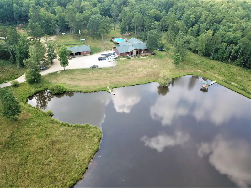 Recently Update!!!At the end of a Private driveway lined with tall regal pine trees sets the beautiful western cedar log cabin, with a 2 ½ acre private lake stocked with trophy bass, and other game fish. Beautiful stone work throughout the home inside and out with detailed elk bugling in the mountain landscape custom set on the outside of the house.Custom Western Cedar Log home on Beautiful stocked lake providing Lodge type setting, with and updated kitchen and an open living area that features wood floors and ceilings, floor to ceiling natural stone wood burning fireplace with a beautiful view of the lake. A master bedroom suite was added in 2008 offering vaulted ceiling, antler chandelier, private deck and large walk-in closet. Attached 2 car garage has extra space for workshop or storage. Detached 2 car garage with lots of storage. Gazebo at the lake has electric. Outdoor fireplace a...