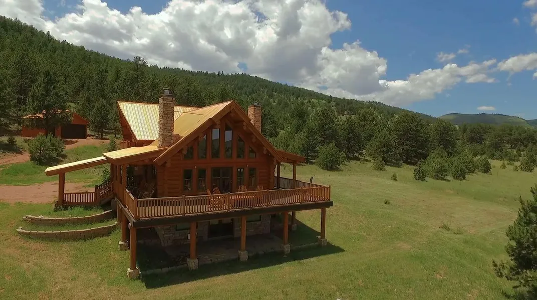 Whispering Aspen Ranch offers a dream setting for family fun, recreation, and quiet seclusion with a authentic handcrafted log home, horse barn, spring fed pond, and magnificent views of Pikes Peak. The land is gorgeous with a combination of mountain meadows and tall timber. The property is accessible year-round, so many uses are possible, including horse back riding, ATV exploration, hiking, camping, and hunting. Enjoy sunrise and sunset from the massive deck or sit around the fire pit, tell tall tales, and admire the star filled sky at night. The property adjoins 640 acres of State land which adjoins 1,000s of acres of BLM lands offering future protection and privacy. The log home features a full log design with 12 Englemann Spruce logs and notched lap joints. There is approximately 3,000 square feet of finished living space with 3 bedrooms and 3 baths. A great room with exposed logs a...