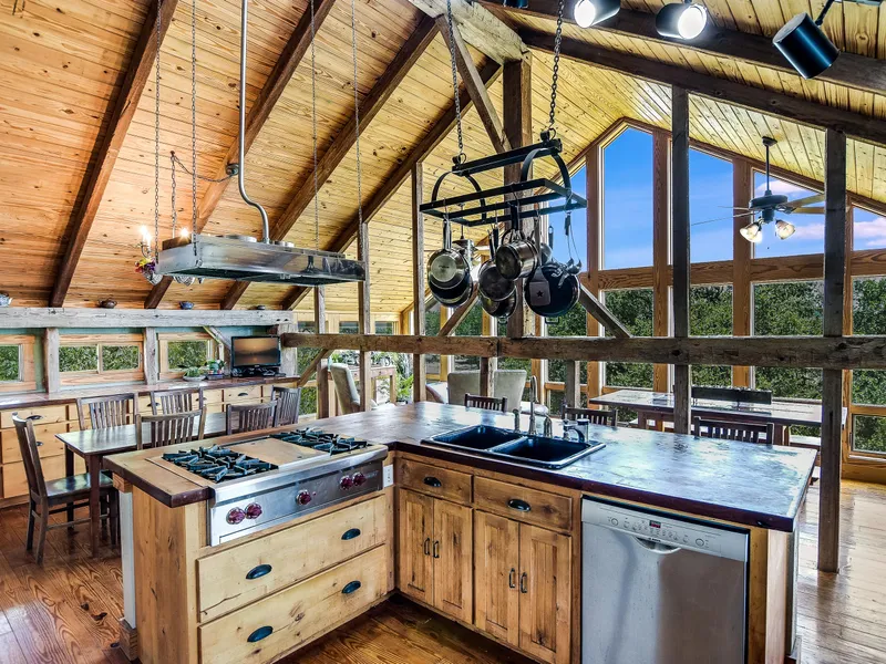 Description: Sitting on a gently rolling terrain amongst mature trees this one-of-a-kind house, which has been reimagined from a barn built in the mid 1800s is an amazing showcase of old craftsmanship meets new design. Big support beams from the barn give unique country character while the big windows bring in abundant natural light while also showing off the stunning hill country views. This 30 acre property has its own water well and water softener and a 10,000-gallon rain catchment tank to support the home without using the well. Ideally situated between San Antonio and Austin, with a short drive to Canyon Lake.