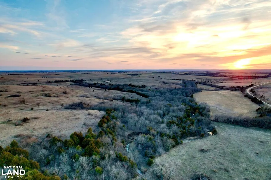 This 157-acre property can provide for the rancher looking to expand his operation, or the hunter looking to chase Kansas whitetails. In addition to 2 ponds, Wildcat Creek stretches east to west and a spring flows on the south providing ample water. A mix of cedars and hardwoods provide good cover and stand locations. Elevation changes create safety routes for deer to travel in the bottoms undetected. Clean meadows on the north end are ideal locations for food plots, and the south pastures would provide great bedding if untouched. After just a few days of trail cameras being set, deer began to show in great numbers. If you are needing a place to graze cattle you can continue the status quo. The fences could use maintenance in most locations. Current pasture leases are in place for 2023. For information or a showing call Tim Vietti @620-305-8180.
