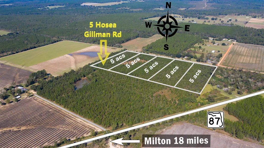 Research Parcel InformationUse GPS ADDRESS 6462 Hosea Gillman Rd. From Atmore, AL/FL line: Start out going southeast on S Main St/AL-21 crossing into FL. S Main St/AL-21 becomes Hwy 97. In 2.5 mi turn left onto W Hwy 4/County Hwy-4. Continue to follow County Hwy-4. In 13.4 mi turn left onto N Century Blvd/US-29 N. In 1 mi turn right onto E Hwy 4. In 15.6 mi turn right onto Hwy 87. In 1.1 mi turn right onto Hosea Gillman Rd. 6462 Hosea Gillman Rd is on the left. Property is past this address across the street.