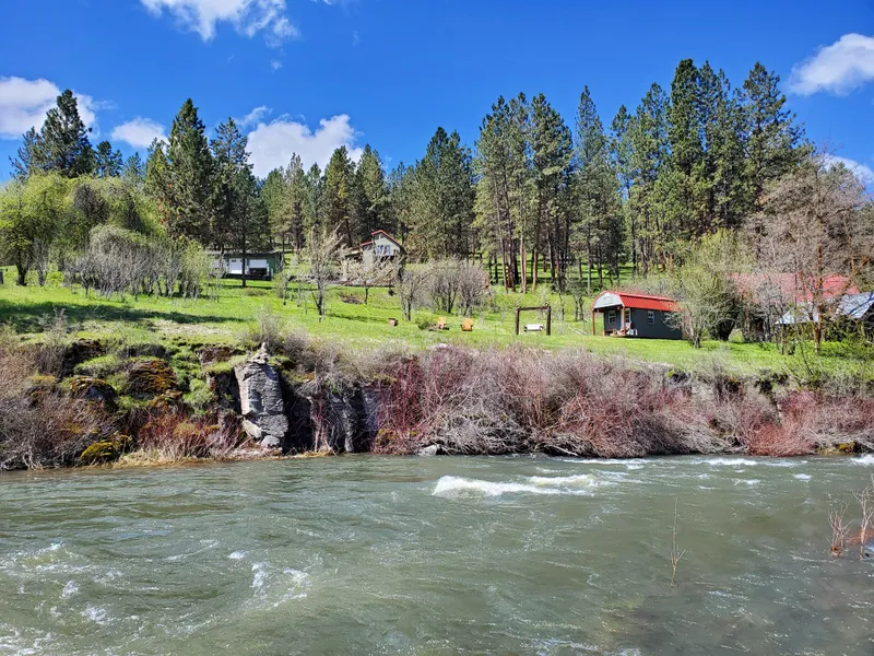 Water: There is almost of a mile of the Middle Fork of the John Day River that flows through the property. This river is deemed Wild and Scenic by the State of Oregon. This house is grandfathered and is the reason it is one of the only homes that is so close to the river on the entire Middle Fork. There are two year-round ponds; one of which supplies permitted hydro-power. They also provide underground irrigation around the house and entertaining area to keep green during summer months. King Creek runs year-round that maintains the ponds throughout the year. A spring supplies gravity fed water to the house and shop. There are 13 acres of meadow that has 5 permitted acres of water rights out of the river and 2.5 acres water rights from King Creek. Bum Creek also runs through the property and flows into the river.
