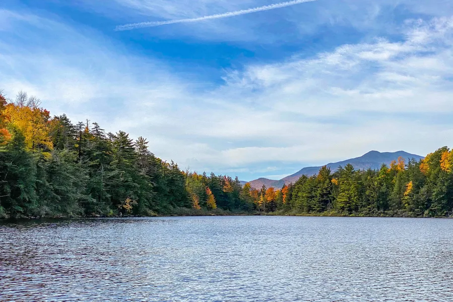 30 acre private lake on over 1 square mile of private forest land. Near Lake Placid, exit 30. 2 bedroom log home directly on the lake.