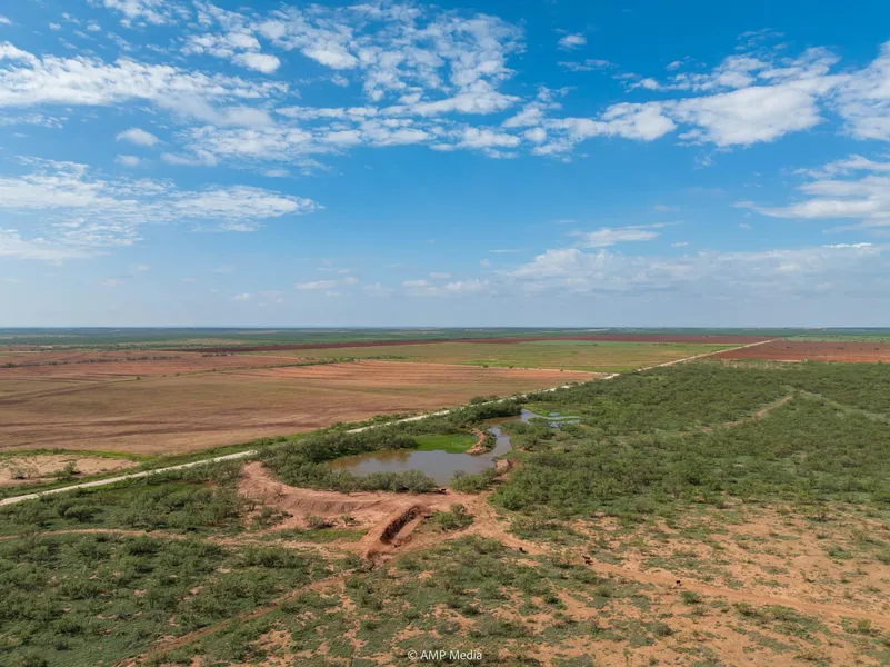Featuring seven stock tanks that are set up to feed off the water that flows from Interstate 20 to Wildhorse Creek. Most stock tanks and feeder dams have had recent dirt work; the tanks are catching and holding water extremely well. Those stock tanks are placed across the property to allow livestock and wildlife access to water without traveling too far. The tanks are also placed to provide ample water for each of the four grazing traps. Those four traps come to a point where the pasture and the near 200-acres of cultivation meet; coming together at a set of sorting and shipping pens.