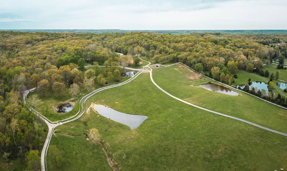 Come take a look at this spectacular property in Wildwood, Missouri. This is truly one-of-a-kind property to hang up your hat and call home and it's only within minutes of Chesterfield, Missouri which is one of the best and safest areas Missouri has to offer. Excellent mix of pasture ground and timber, a park like setting and suitable for horses or other farm animals. This incredible property features seven ponds, an indoor riding arena w/18 stalls, an outdoor riding arena and other outbuildings on the property. The estate is a spacious ranch home with a 4,149 sq ft. home with 4 bedrooms and 2 baths, and an impressive architectural design with an abundance of windows allowing expansive views of the lavish acreage. The updated Epicure kitchen boasts a brick wall of 2 ovens 2 & warming drawers, granite counters, stone backsplash, custom cabinets and gas stove. Family room features vaulted wood panel ceilings, wood floors, skylights and floor to ceiling brick wood burning fireplace. The master suite flaunts wood panel ceiling, floor to ceiling windows with a beautiful luxurious bath. There's a stately gated entrance and two, three car deep bay detached garages. Don't miss out on this phenomenal estate.