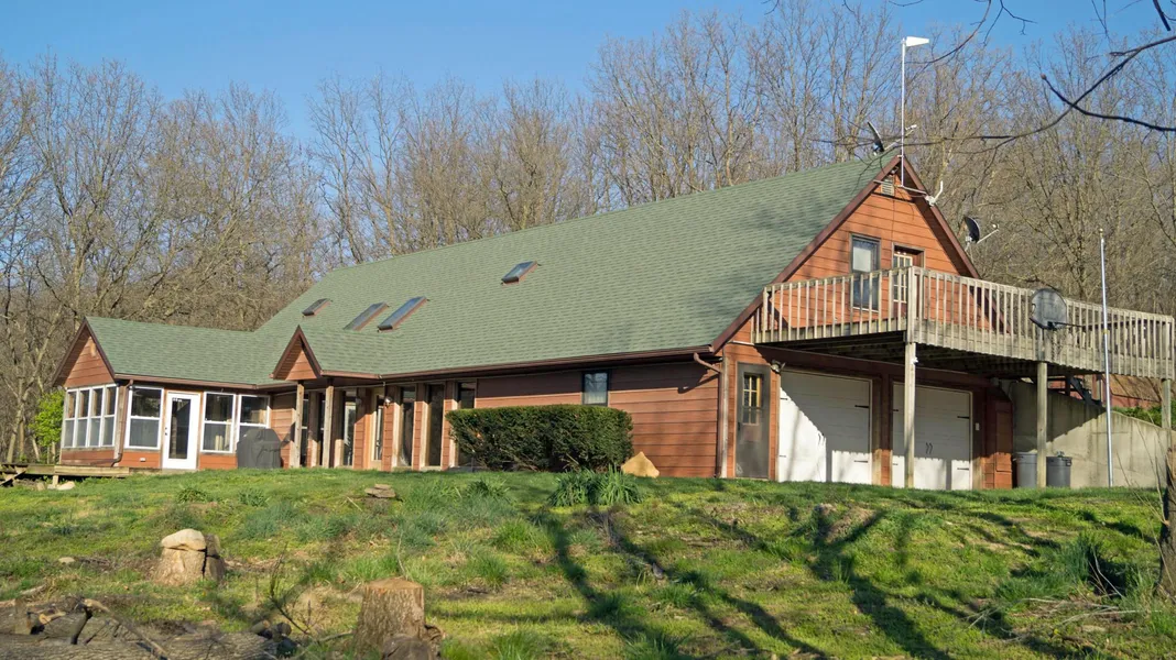 Tucked in the back of a circle drive, across the road from 54 acre Foxglove Conservation area, this spacious home on 22.29 +/- acres truly is a wildlife lovers paradise and will not last long! Approximately 2885 sq. ft earth contact home featuring 4 large bedrooms each with walkout patio access, and 2.5 full bath. Walk into the open entryway to the living room which has a beautiful wood stove or head into the kitchen with breakfast area adjoining a cedar lined sunroom and deck with a hot tub overlooking the property towards the creek and timber. This acreage is very diverse containing a mix of Missouri Hardwoods, well maintained designated trail system, open and brushy flowing creek bottoms, tall ridges with beautiful vantage points, abundance of wildlife sign, multiple stands overlooking potential food plot locations. A Large outbuilding sits along side the drive providing a great pla...