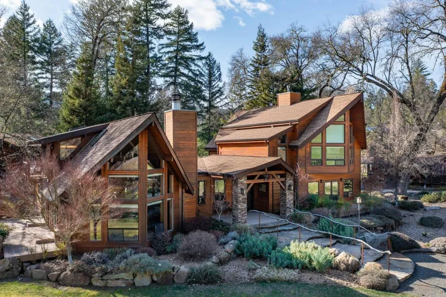 Perched in a secluded mountain bench overlooking the Eel River, sits one of Mendocino's most spectacular private and self sufficient retreats - the Wind River Ranch. One approaches the Ranch through a river valley rich in pasture and fringed by towering stands of ancient firs. The road then ascends above the river floor as it winds through the forest to finally emerge at a manicured mountain meadow depositing you at the heart of the Ranch.The centerpiece of the Wind River Ranch is the Lodge - a sprawling 5500 Sq. Ft. cedar masterpiece that leaves nothing to imagination down. The Lodge epitomizes the perfect union between restrained elegance and function. Walking into the Living Room with its towering vaulted ceilings and its immense three cornered fireplace is reminiscent of entering a chalet in the Alps. The level of craftsmanship resonates throughout the Lodge. The chef's kitchen is de...