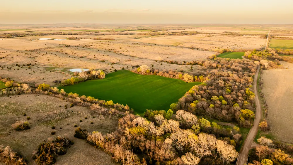 The western draw is home to a 1.5-acre pond. This area is known for excellent duck and goose hunting. The farm sits only 6 miles away from the Mcpherson Wildlife Area. A large wetland-based wildlife area that holds many migrating ducks and geese every year. This pond when full will routinely hold all kinds of waterfowl in the fall as it’s a great loafing area between large fields in the surrounding area. The turkey population on this farm and many surrounding neighboring farms is thriving as well. This farm has large cottonwoods for roosting trees and excellent spots for that morning Tom to strut and show off. The farm's natural topography gives any future buyer wanting to build excellent options, from overlooking a pond to high on top of the hill, taking in the sunrise and sunsets this farm will give you.