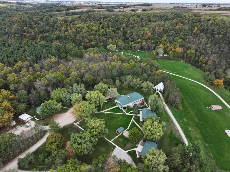 Welcome to Winnebago Springs Event Center, nestled in the heart of Houston County, MN. The property consists of over 116 sprawling acres with boundless opportunities. The current owners purchased the property in the fall of 2017 with a vision to transform the property into a destination for events of all kinds. They have done a tremendous job with the transformation; the event center is roughly 12,000 square feet with a capacity for 250 people for events, a commercial kitchen, offices, and rooms for parties to prep before weddings. The lower level of the event center features a recreational room, dorm-style rooms, and private rooms with bathrooms. The lower level sleeps 31 people.One of the most exquisite additions to the property is the Air Chapel, located just outside the event center and has seating for 170 people. The Air Chapel was built with the perfect backdrop of natural spring a...