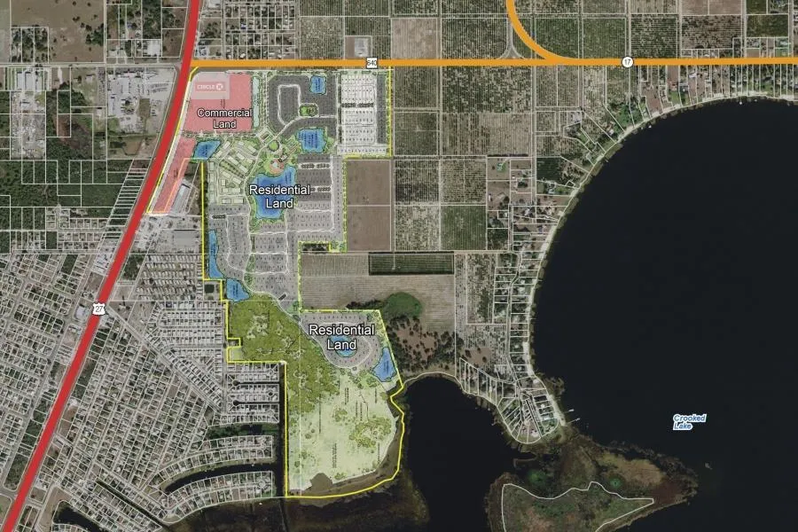Winslows Point Mixed Use Lakefront has 427 single family lots and 106 multi-family lots across 270 acres. This planned development features 3,100 FT on Crooked Lake and has a PD in place. Along with residential lots, this property can feature 124,400 SF retail commercial space; 50% set aside for open space (134 acres), and 67.1 acres of conservation easement. Located on the southeast corner of the intersection of US Highway 27 and County Road 640 in Polk County, Florida this area continues to see growth as neighboring areas develop.