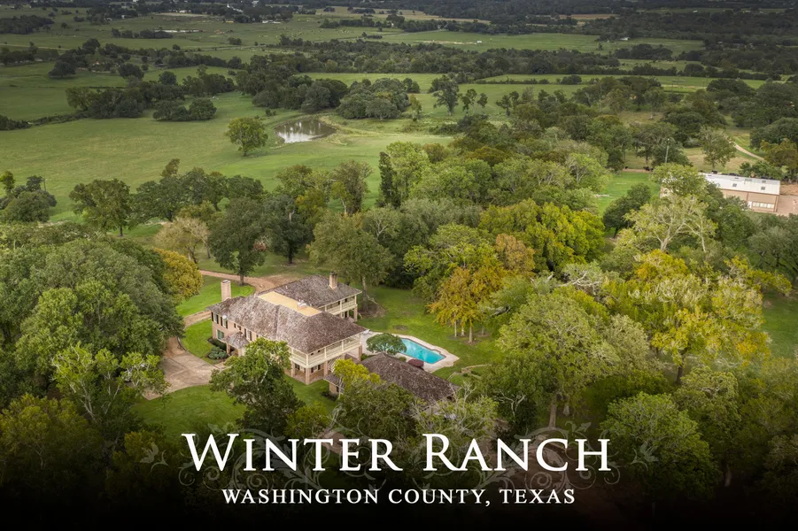 First time offering in 35+ years! Approx. 193+ acres featuring high rolling hills with countryside views and groves of giant Live Oak trees located near historic Independence on the scenic La Bahia Trail FM 390. A winding drive leads up to the custom built home sitting on a high rolling ridge away from the road and perfectly placed in the middle of the property. The house offers a stately 6126 SF, four bedrooms, four full and one half baths, downstairs master bedroom, office, two living areas, large dining room, kitchen with keeping-breakfast room and fireplace and great views from the porches. Other improvements include a Swimming Pool; Shop Building with area for equipment storage and workshop/office; Roping/Riding Arena; Cross-Fencing; and 3 ponds with the potential for a large lake site. The property is the perfect mix of meadows with mature trees, wooded areas for wildlife habitat and a fork of Jackson Creek traverses through the front portion of the property. There are 70 feet of elevation changes approx. 355on the hilltop rolling down to approx. 285 at the creek. Winter Ranch offers great privacy with easy paved road access to Brenham and Bryan-College Station.