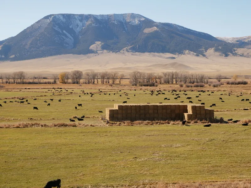 The Wolfe Hereford Red Rock River Ranch is a 2,080-acre high production operation that includes 840 deeded acres along with a combined 1,240 acres of State and BLM grazing lease. Located near Dell, MT sitting at 6,004' of elevation, the ranch combines senior water rights, high alpine grass, and good stocking density to provide the owner with a high quality stand-alone ranch or a wonderful addition to an already existing operation. Historically, the Wolfe Hereford Red Rock River Ranch has run 400 AUM year round, and run 600 AUM throughout the seasons with added summer grazing pasture from June-August. The lush flood irrigated hay meadows produce rich, dense grasses that pack on pounds. Around 500 of the 840 deeded acres are irrigated, with 420 being under flood irrigation and 80 acres watered by wheel line. Owner stated production of 2 tons of hay per acre provide ample winter grazing feed. Irrigation and stock water rights are procured from the Red Rock River as well as Wolfe Springs. High flow rates and senior water right positions help keep the ranch green and in production.
