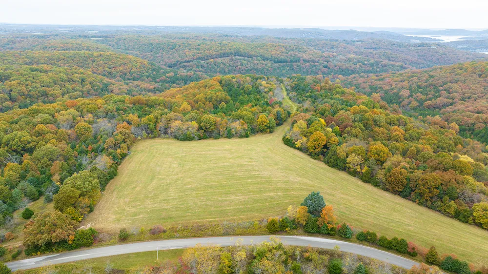 Outstanding hunting, quality building sites, mature timber, paved county road frontage, electricity availability does it get any better? This beautiful tract of Ozark land is just a few minutes from Table Rock Lake and has access to a public boat launch near Cricket Creek Marina, Long Creek Marina, and Big Cedar Lodge. Blue Eye, MO, is just minutes up the road from where you can access all the amenities you need, and there are no restrictions. Along the road is some prime established pasture ground, having been cut for hay in the past. There are numerous building sites with this gentle but wonderful terrain. The large ridge covers a good amount of the land and is loaded with mature white oak, post oak, cedar, and more. The hunting is phenomenal for the resident deer and turkey. The gentle ridge falls off to the north into a lush valley which has historically produced some incredible hunt...