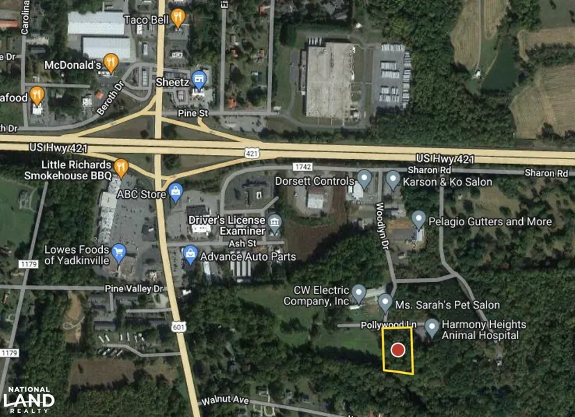 1.9+/- acres of open, commercial development land in Woodlyn Business Park located in Yadkinville NC right off of US 421& US 601 exit 257. The property is zoned LI which allows for a wide range of uses including office, light industrial, self-storage & automotive services (See Table of Permitted Uses)