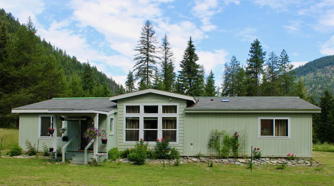 Amongst the forested mountains, this home sits on over 2 secluded acres near Thompson Falls, Montana. The large windows capture the beautiful scenes and the bright beams of light in this 3-bedroom, 2-bathroom manufactured home. The propertys backyard is fenced in and there is a storage shed and a 2-stall carport. The canopy of trees offers opportunities to hunt and hike while close by Clear Creek and Prospect Creek provide excellent fishing. One smell of the pine-infused air and one look at the stunning mountains against the pigmented blue sky will capture your heart! This property meets every expectation for a Montana mountain retreat. Its so beautiful youll never want to leave home!