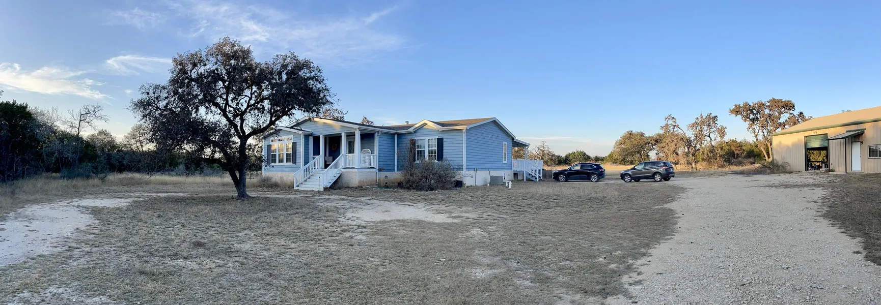 Work from home in this spacious 3/2 triple wide on a concrete slab. Office and half bath set up in the spacious Barn/workshop. All the privacy of living in the country within a short 5 minute drive to Utopia's shopping and restaurants. Home is an open concept design with two living areas, dining room, dine in kitchen with a commercial sized refrigerator/freezer. Split bedrooms give plenty of space and privacy. Primary bedroom has ensuite bathroom with separate vanities, walk in shower, and soaking tub. Walk in closet has built in shoe rack and shelving. Custom window coverings throughout the home will remain. A wood burning fireplace in the family room is great for those cold winter nights. The back porch is an expansive 16' X 66' fully covered with a partially buried swimming pool just a stroll into its cool waters. wonderful place to watch the sunset, and then the stars. Barn...