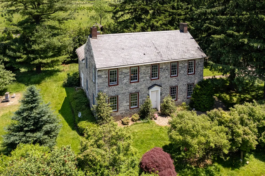 This property offers so much potential in a perfect location along high-visibility Route 22. Among the 38+ scenic acres, you’ll find a stone farmhouse, multiple outbuildings, and a working Christmas tree farm with a large parking lot. A charming footbridge leads to over 3000 trees of varying species. Two pole barns house machinery and supplies, while a three-bay garage has been partially converted into a gift shop. This center hall colonial dates back to 1790 and includes a kitchen, parlor, dining room, mudroom with hidden laundry, and a full bath on the first floor. High ceilings, deep-sill windows, unique built-in elements, and a transom-topped front door all add to this home’s inimitable character. The farmhouse features four non-working fireplaces, and in the original kitchen, which is now a parlor, history lovers will appreciate a functioning fireplace with a 12-foot hearth and orig...