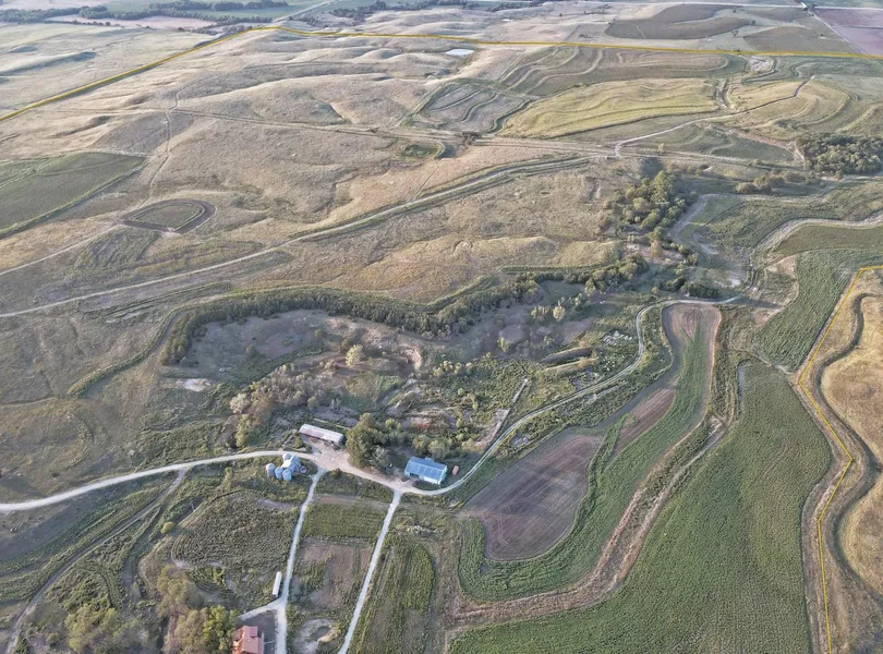 Discover the unmatched value of this expansive 930-acre ranch, featuring approximately 50% of its land devoted to high-yield crops including corn, beans, wheat, milo, and hybrid Sorghum-sudan with the remaining acres in native prairie grass. This prime agricultural property is complemented by a newly constructed rustic timber frame two-story home, providing modern living amid a thriving farming, hunting and wildlife operation.