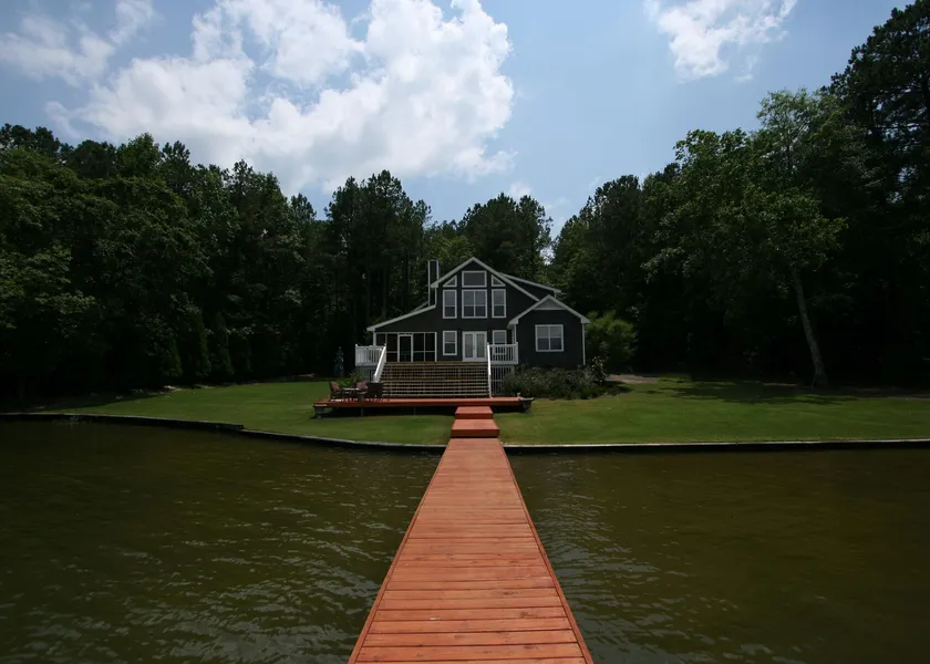 This home has a spacious, updated kitchen, wood burning fireplace in the family room, beautiful pine floors & 2 bedrooms on the main level. Upstairs is an additional bedroom, bath & spacious sleeping loft. There are plenty of windows featuring the flat lakeside yard, pier, seawall, play area & 193+/- ft of shoreline. Screen porch, deck & views are also nice!