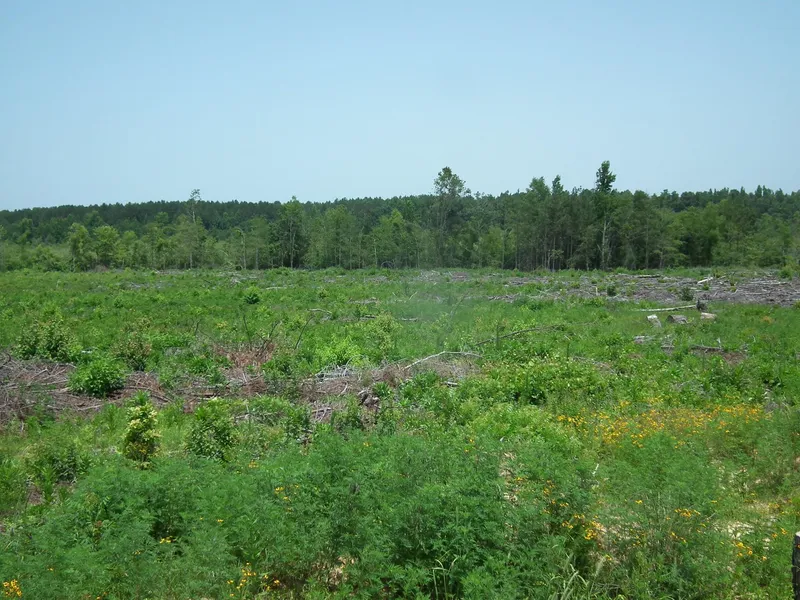 The property contains 88.5 acres of 4 year old replanted pines and 56.8 acres of open land.