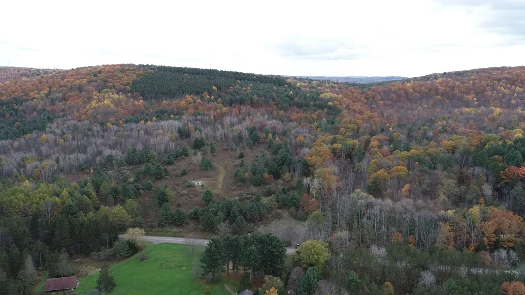 Year round hunting preserve site! This large acreage property is centrally located between Elmira, Binghamton, and Ithaca, and boasts over 230 acres, outfitted with a small, meandering stream which splits direction at a saddle between two slopes. Mostly wooded with hard and soft wood species, providing an ideal setting for large deer and turkey habitat. Several medium brush and open areas provide a choice setting for food plots. Ample road frontage. Existing access easement provides a neighbor access to a site on the back side of the property. All mineral and timber rights convey with the sale. Create memories with family and friends on this choice recreational property, which could easily be used for a year round or seasonal home with electrical service at the road.