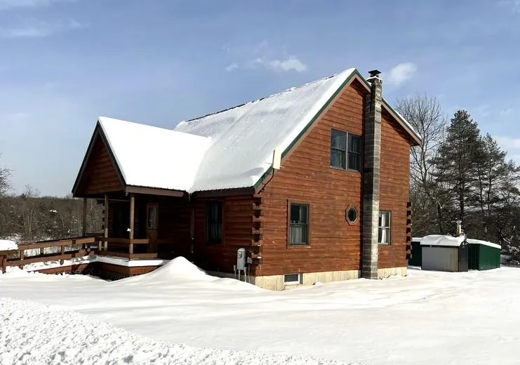 Year-Round Log Cabin on Mad River Here is your chance to escape to the country! This cozy log cabin would make a great second home or getaway cabin and features 2 bedrooms, 2.5 baths, and over 1,500 sq. ft. of living space. The home sits on 12 acres composed of rolling farm meadows and woodlands, framed by old stone walls. A detached pole barn/workshop with three overhead doors can be used to store cars and equipment. Fish for trout from your own land - the property enjoys 300' of frontage on the Mad River. Also, Mad River State Forest is right down the road for hunting, hiking and cross-country skiing. The home is also only 20 minutes from Salmon River Reservoir, which offers boating, fishing and four seasons of recreation. The property is quiet and private yet is only 10 minutes from the village of Camden, NY for groceries and other conveniences.