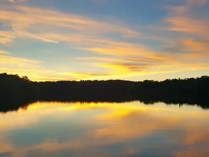 40 acre crystal clear lake stocked with bass, bluegill, crappie, and catfish.