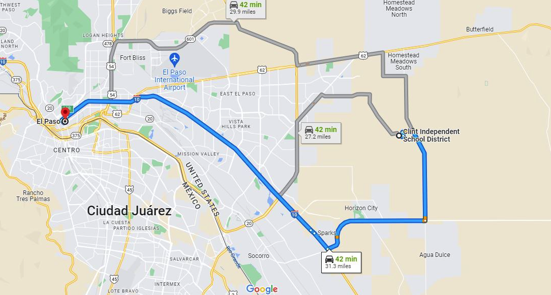 Closest Small Town: Clint, Texas 79836 (27 min (16.0 miles)