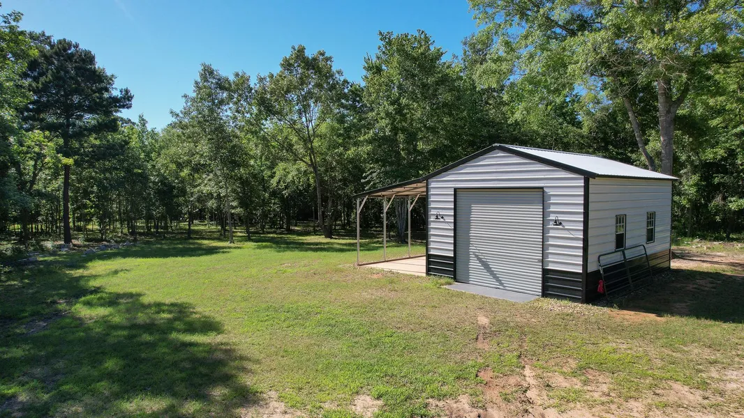 Featuring a brand-new shop built on a solid concrete slab, this versatile space is equipped with rough-in plumbing, electricity, & plugs for an RV, making it perfect to add insulation and convert into a cozy cabin or practical equipment storage. plugs for an RV!