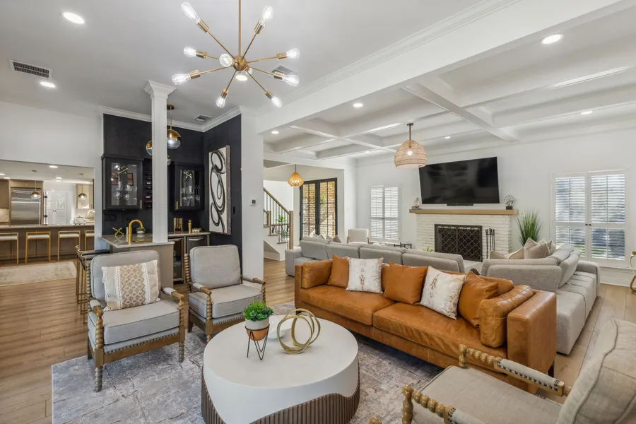 Your piece of paradise in Rockwall! Set on spacious 1.38 acres near charming downtown dining, shopping, and lakeside sunsets, just 30 minutes from Dallas. Chicago antique brick exterior is embraced by mature trees and lush landscaping. Step through black-framed glass doors into a fusion of timeless-meets-modern design. Light wood-tone, luxury vinyl flooring leads to a striking kitchen featuring a Taj Mahal waterfall island and refined cabinetry. Enjoy coffee on the private courtyard patio, gather with family and friends in oversized dining area. Relax or entertain in spacious living areas connected by a stylish bar. Expansive slider doors open to a stunning diving pool and patio scene, complete with a cabana, bar, and bath. The secluded primary suite boasts a cozy seating area, fireplace, and a luxe wet-room shower. An additional downstairs bedroom with study built-ins, plus three more c...