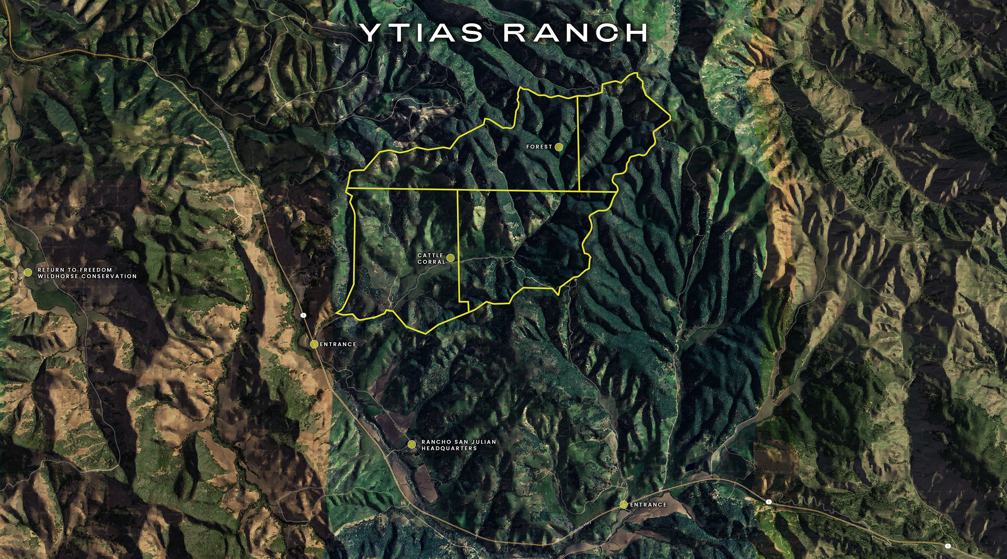 2688 acre Ytias Ranch. Once part of the Historic 48,000 acre Rancho San Julian Mexican Land Grant, this beautiful cattle ranch is located just north of the Scenic Hwy 1 corridor near the San Julian Headquarters. This is an area of large undeveloped ranches characterized by oak forested rolling hills, verdant valleys, and tree lined creeks and springs. Privacy, serenity, natural beauty, wildlife, and easy access off of Hwy 1 are the predominant features of this special property.