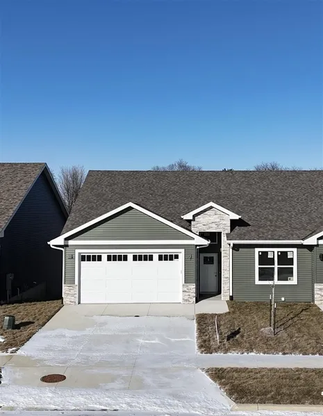 Don't miss this well appointed custom zero lot home with many upgraded features and finishes throughout. Zero entry front entrance opens to a 12' foyer leading to an open concept main living area with 11' trey ceiling and 8' wide stone fireplace with custom oversized mantle. Kitchen features semi-custom cabinetry, quartz tops, eat at island, stainless steel appliances and walk-in pantry. Dining area opens to a covered deck overlooking backyard. Main floor primary suite includes a double vanity ensuite connecting to the walk-in closet with convenient access to the laundry room. Finished lower level with living area walking out to backyard, bedrooms three and four, third full bath and a LARGE storage room! Location offers quick access to Iowa City and many amenities! Schedule a showing today! **Interior photos are of similar unit. Virtual tour is of adjacent unit that has a 3rd stall.**