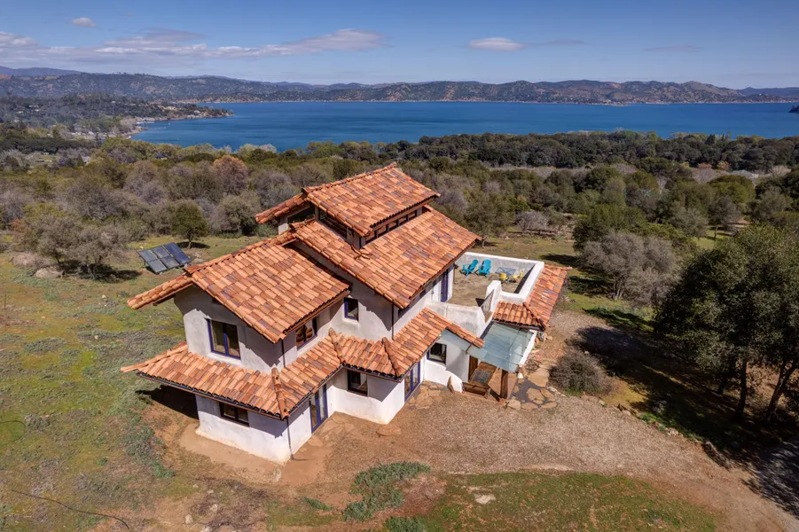 Quintessential Wine Country Retreat! Incredible setting and unique design in this wine country estate in the heart of Konocti Bay. 30+/- Acres with riparian rights for irrigation from the lake and a domestic well. The Main residence, a unique sustainability built 3 story 4 bedroom 3 bath home.The copper, wrought iron, slate and other natural accents, bring in the warmth and a touch of the surrounding landscape. Full of vintage charm this this property features views of the lake, vineyards and Mt. Konocti through the North East facing aspect. An 1800 Sqft. custom built barn with loft and kitchenette. Plus 2 additional residences that could be used to host guests or farm workers. The Manufactured home has 2 bedrooms 1 baths. A separate cabin hosts 1 bedroom 1 bath. Easy to manage & maintain just under 5 Acre old vine Zinfandel vineyard, walnut & fig orchard. Plus a full size chicken coop and multiple trails great for hiking and horseback riding.